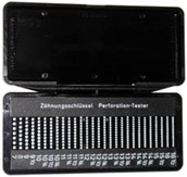 With this gauge it is easy to obtain the exact perforation owing to the teeth being raised. The lid of the box is intended for use as a watermark detector tray using watermark fluid.