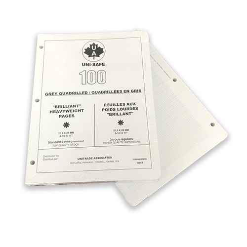 Similar to the Brilliant pages, but of a slightly lighter stock, the Unisafe Heavyweight Pages are available in either light blue or light grey quadrille (grids).